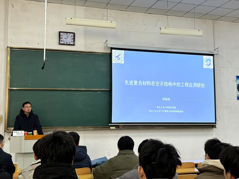 2025年2月23日上午,我院特邀西北工业大学航空学院教授、西北工业大学飞行器复合材料结构研究所所长郑锡涛做题为“先进复合材料在空天结构中的工程应用研究”的学术报告。报告在明向校区行知楼B119进行,学院2021级、2022级本科生和部分研究生参加,报告由院党委副书记闫晓峰主持。