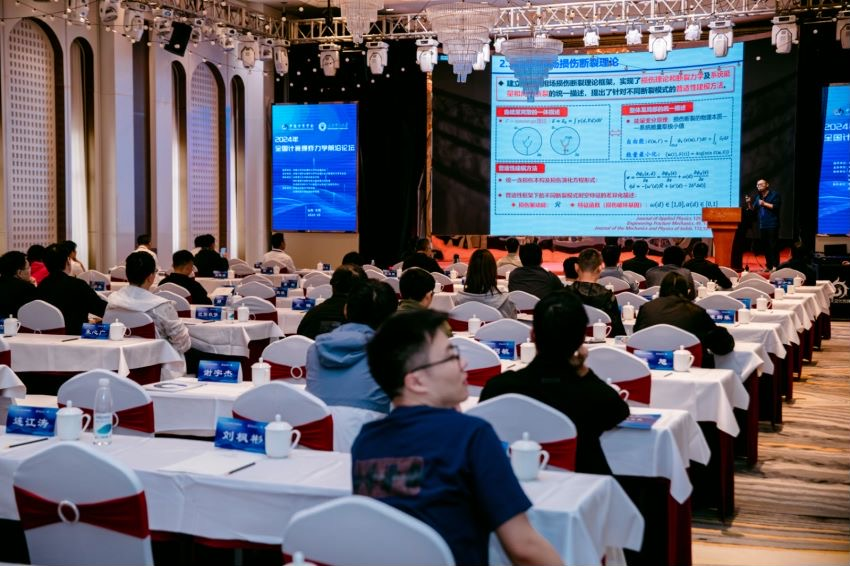 开幕式结束后,上海大学程玉民教授、哈尔滨工程大学王诗平教授、北京应用物理与计算数学研究所郭少冬研究员、大连理工大学周才华副教授、西北工业大学杨扬副教授、天津大学张梦溪副研究员分别作了《改进的无单元Galerkin方法研究进展》、《近场水下爆炸载荷及其对典型结构的毁伤特性研究》、《基于界面重构的三维多介质ALE方法研究》、《折剪纸耐撞性结构》、《无网格有限粒子法(FPM)研究进展及应用》、《复杂水工结构等几何数值仿真平台开发与应用》大会特邀报告。
