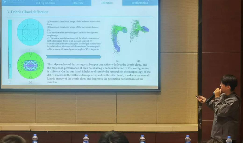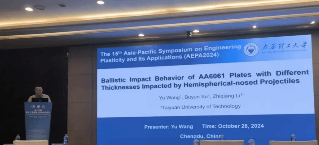 我院副院长李志强教授、肖革胜副教授、常慧老师以及博士生王宇和硕士生汪锦奇参加此次会议,并作分会场报告。肖革胜汇报了基于分离式霍普金森压杆动态压入测试方法,及其在动态塑性本构参数表征中的应用;常慧汇报了CrCoNiSi0.3中熵合金的率温相关力学性能和微观变形机理研究;王宇汇报了6061铝合金计及应变率和温度效应的本构行为及其应用;汪锦奇汇报了航天器瓦楞型Whipple结构参数对其超高速碰撞行为影响的数值研究。