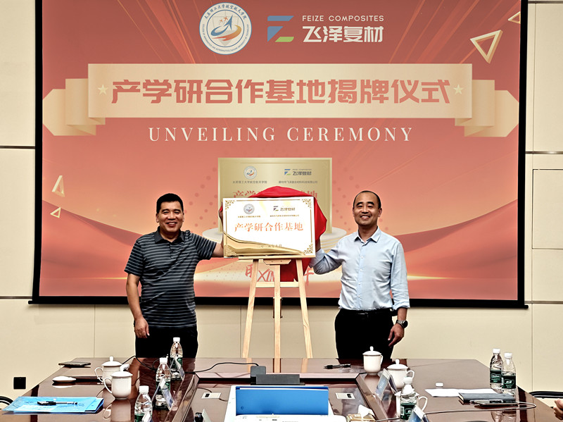 在热烈的掌声中,李志强与辛朝波共同为“产学研合作基地”揭牌,标志着学院与廊坊市飞泽复合材料科技有限公司的合作迈入了新的阶段。相信在双方的共同努力下,产学研合作基地将成为培养高素质应用型人才的摇篮、技术创新的高地,为复合材料行业的进步和地方经济的发展做出积极贡献。