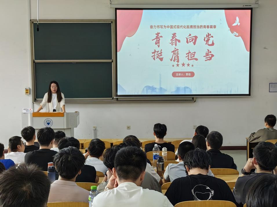 院团委副书记兼学工办副主任贾佳和辅导员武文君以“青春向党,挺膺担当”为主题讲授团课培训第二讲。两位老师通过青年在脱贫攻坚、疫情防控、科技创新等事业中的卓越表现,向团员们展示了青年在推进强国建设、民族复兴伟业中的青春力量。习近平总书记强调“实现强国建设、民族复兴宏伟目标,需要全党全国各族人民,包括广大青年团结一致、全力以赴,继续爬坡过坎、攻坚克难”,广大青年要在肩负时代重任中,坚定理想信念,厚植家国情怀,在实现中国梦这场接力赛中奋勇争先。