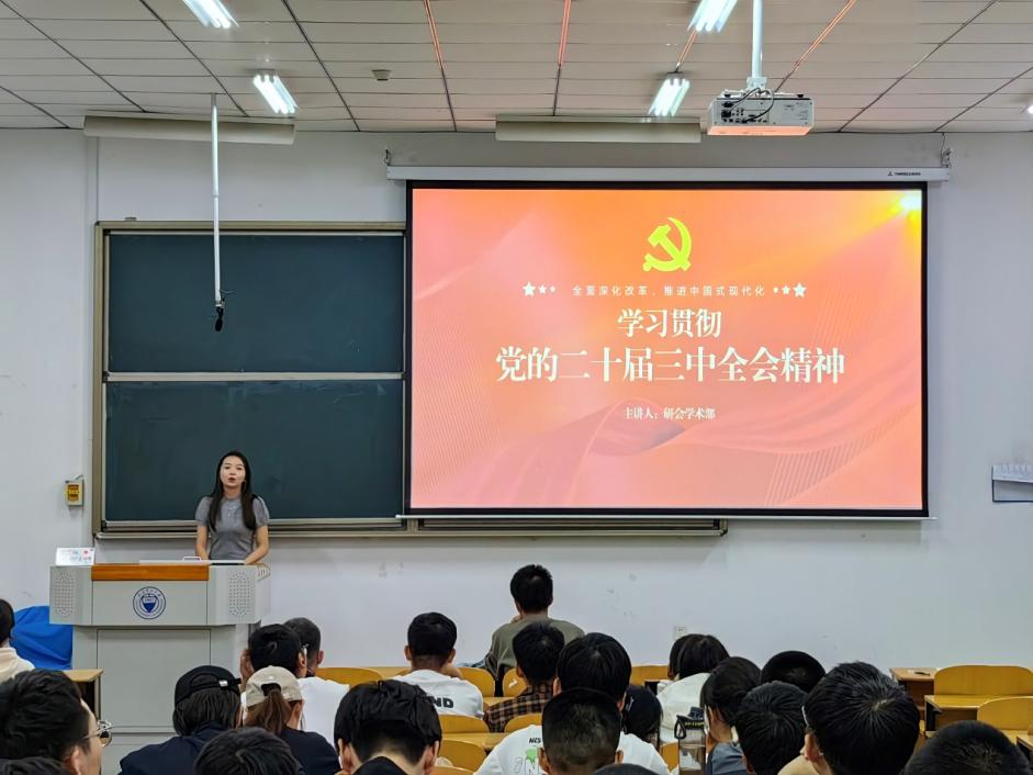 在第四讲团课中,马克思主义学院大学生自主学习马克思主义协会和校青马宣讲团的成员分别在两校区带领同学们进行了党的二十届三中全会精神的学习。全会通过了《中共中央关于进一步全面深化改革、推进中国式现代化的决定》,这一决定阐明进一步全面深化改革、推进中国式现代化的重大意义和总体要求,锚定2035年基本实现社会主义现代化目标,重点部署未来五年的重大改革举措。此次学习加深了团员青年们对党的二十届三中全会精神的理解,同学们纷纷表示将继续深入学习贯彻党的二十届三中全会精神,以更加饱满的热情和更加务实的作风,在进一步全面深化改革大局中展现青春作为、彰显青春风采、贡献青春力量,为中国式现代化挺膺担当。